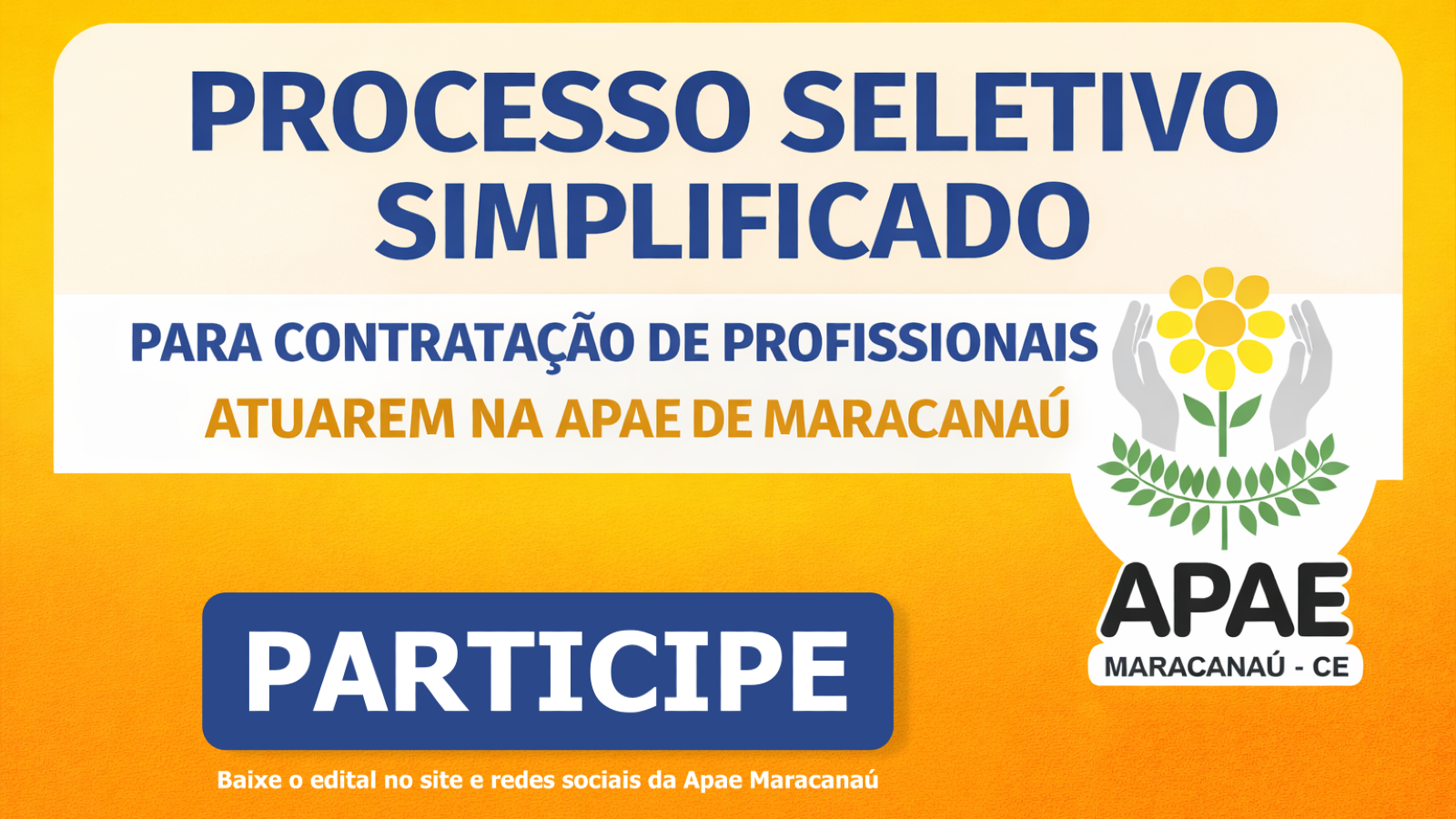 Processo seletivo simplificado destinado à contratação temporária de profissionais para atuação na APAE de Maracanaú, por período determinado, conforme necessidades institucionais.